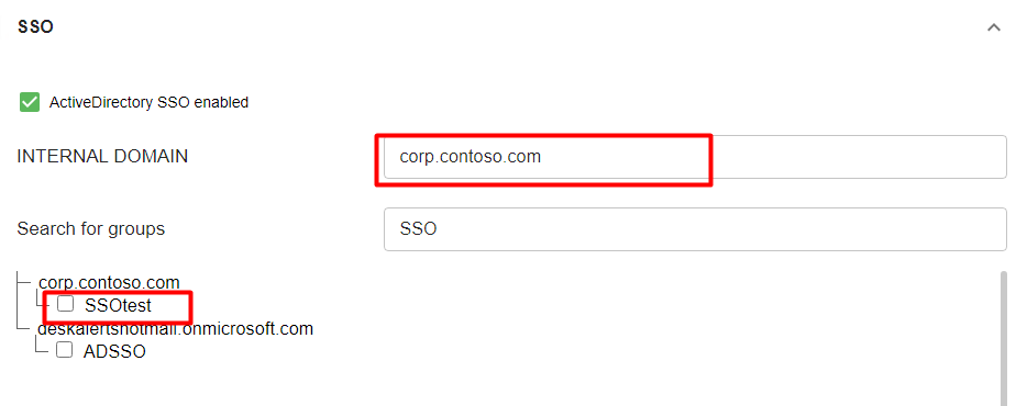 Expand the SSO tab and enable the ActiveDirectory SSO enabled checkbox.