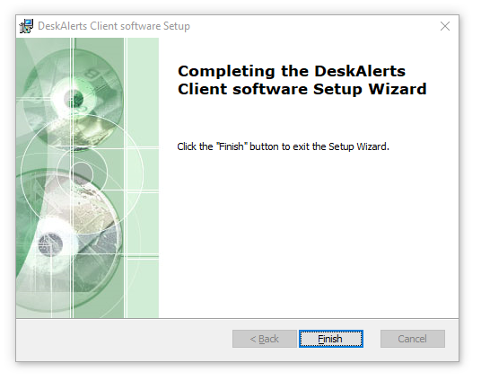 When the installation is complete, click Finish to close the wizard. The DeskAlerts Agent is now installed and ready for use.
