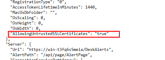 To allow the DeskAlerts Agent to connect to a server with an untrusted SSL certificate, follow these steps: