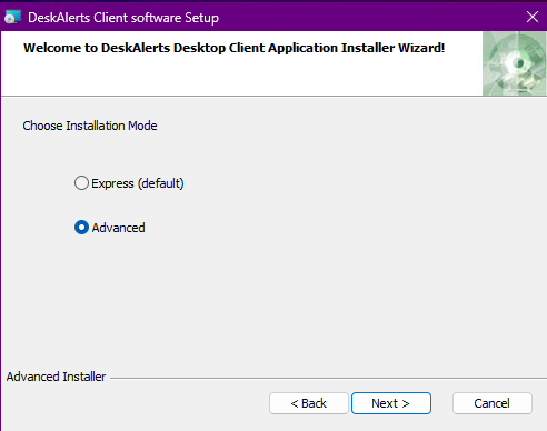 Select the desired DeskAlerts Agent installation mode: