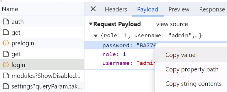 - Open the Login method in the list and copy value of the password key, this is your salted password: