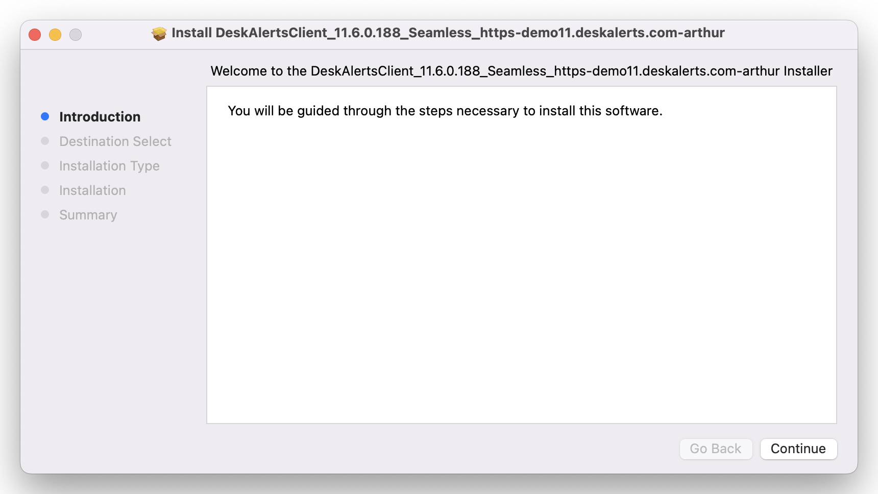 Double-click the .pkg file you received from the DeskAlerts Support team to begin the installation.
