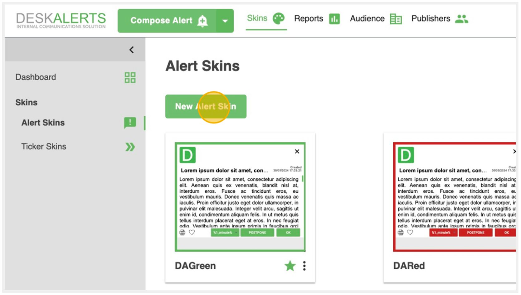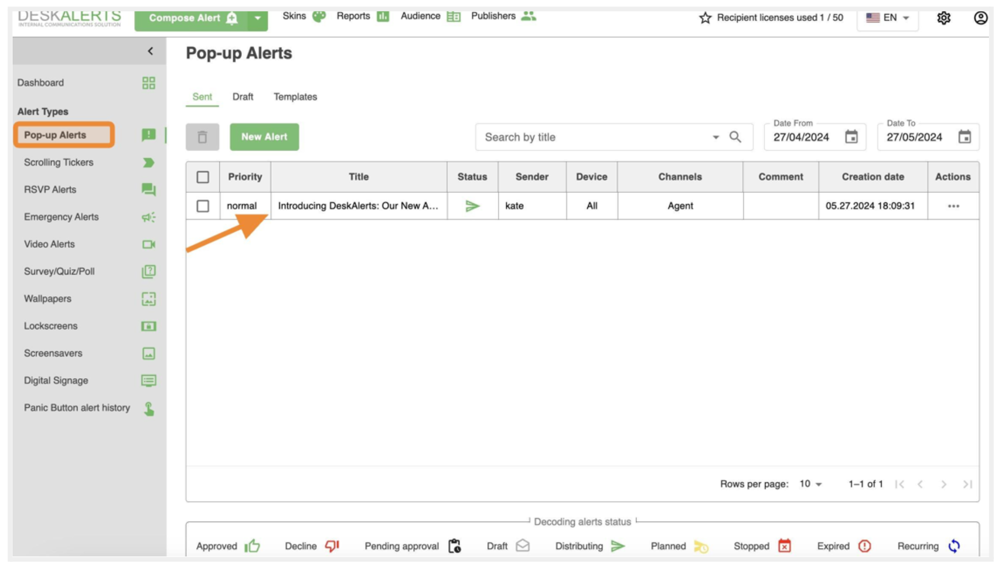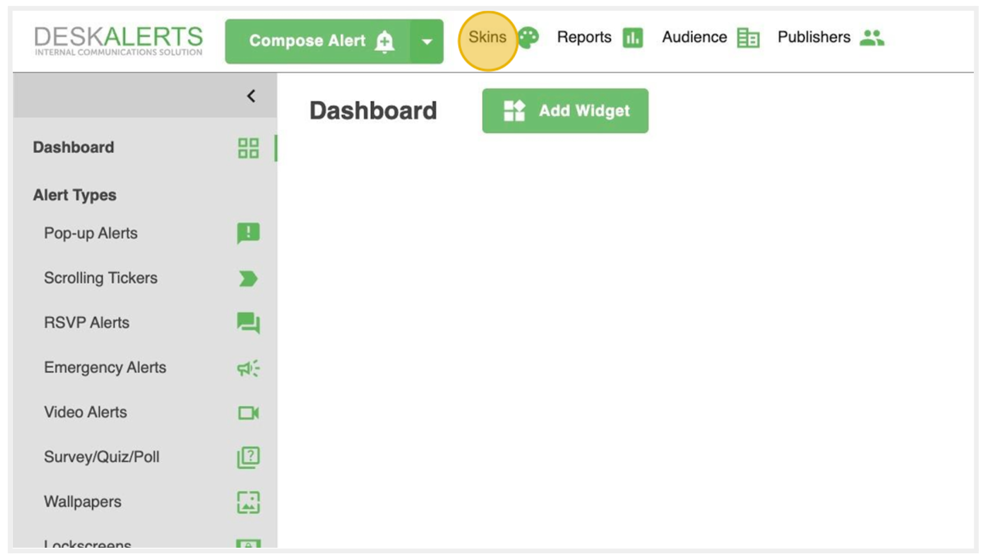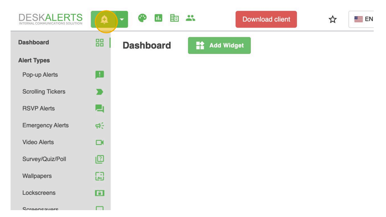 At the top of the DeskAlerts Control Panel, you’ll find the Compose Alert button—your main tool for creating notifications.