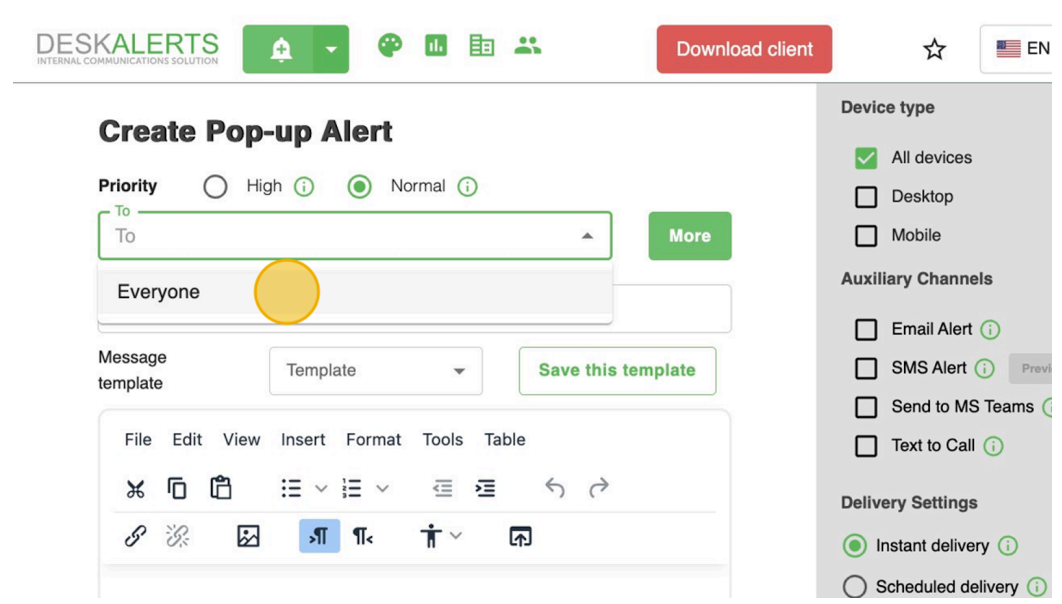 With DeskAlerts, you can reach your audience through a variety of channels, including: