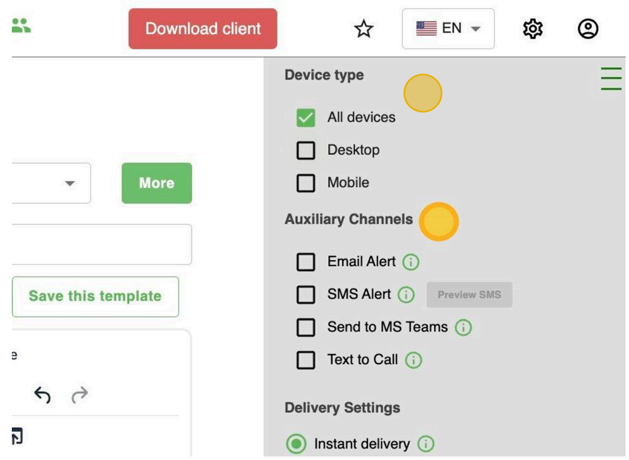 Choose who receives your alerts:- Broadcast to all users
