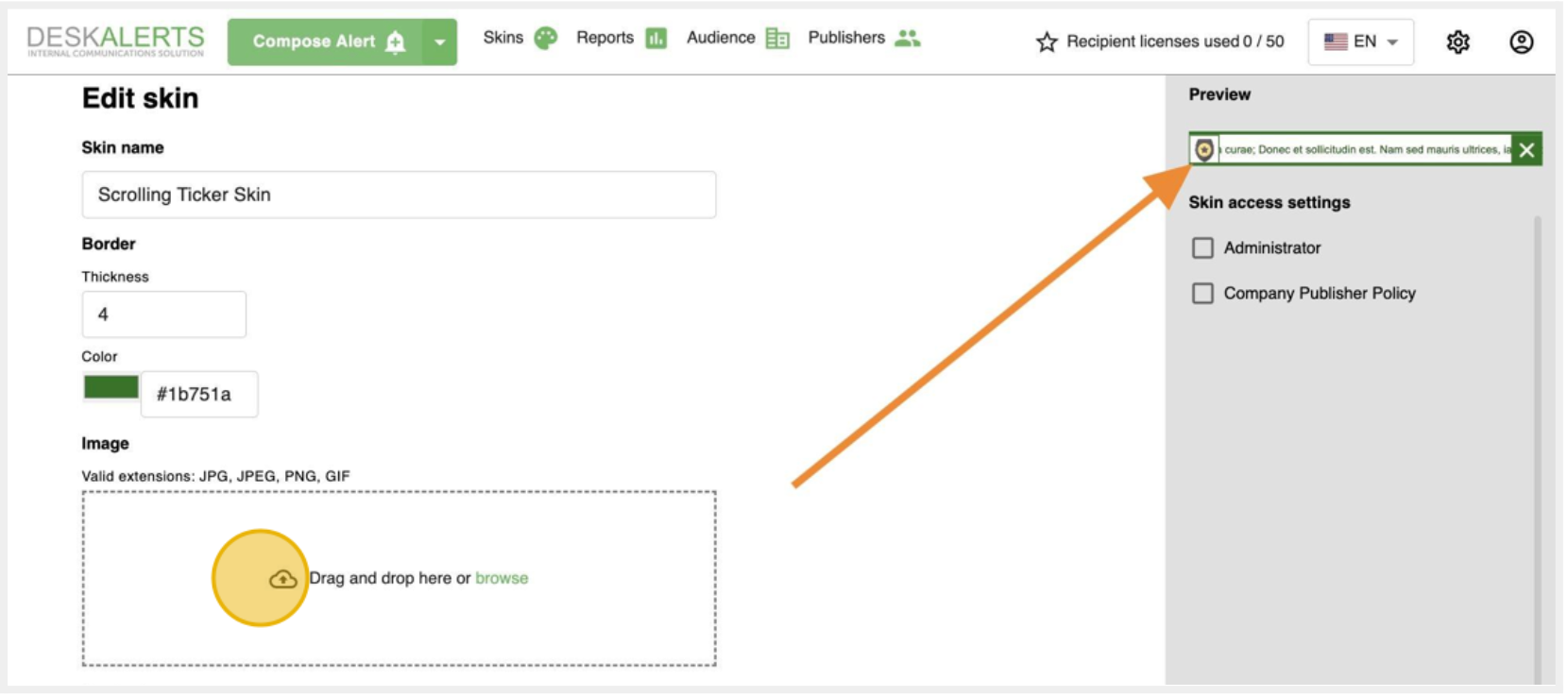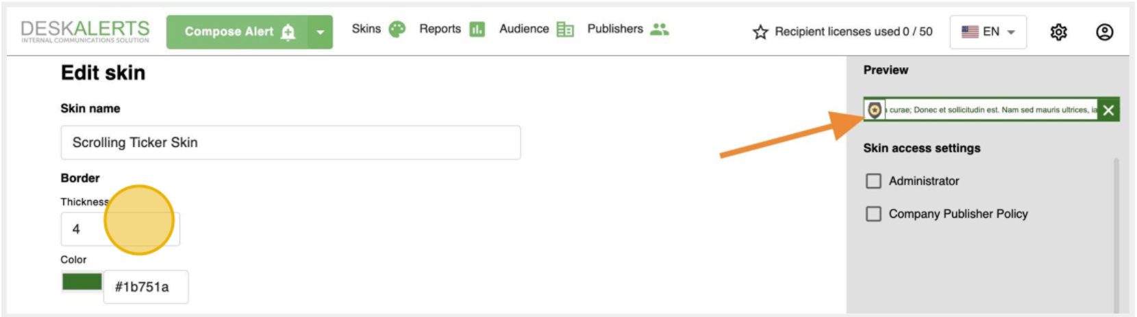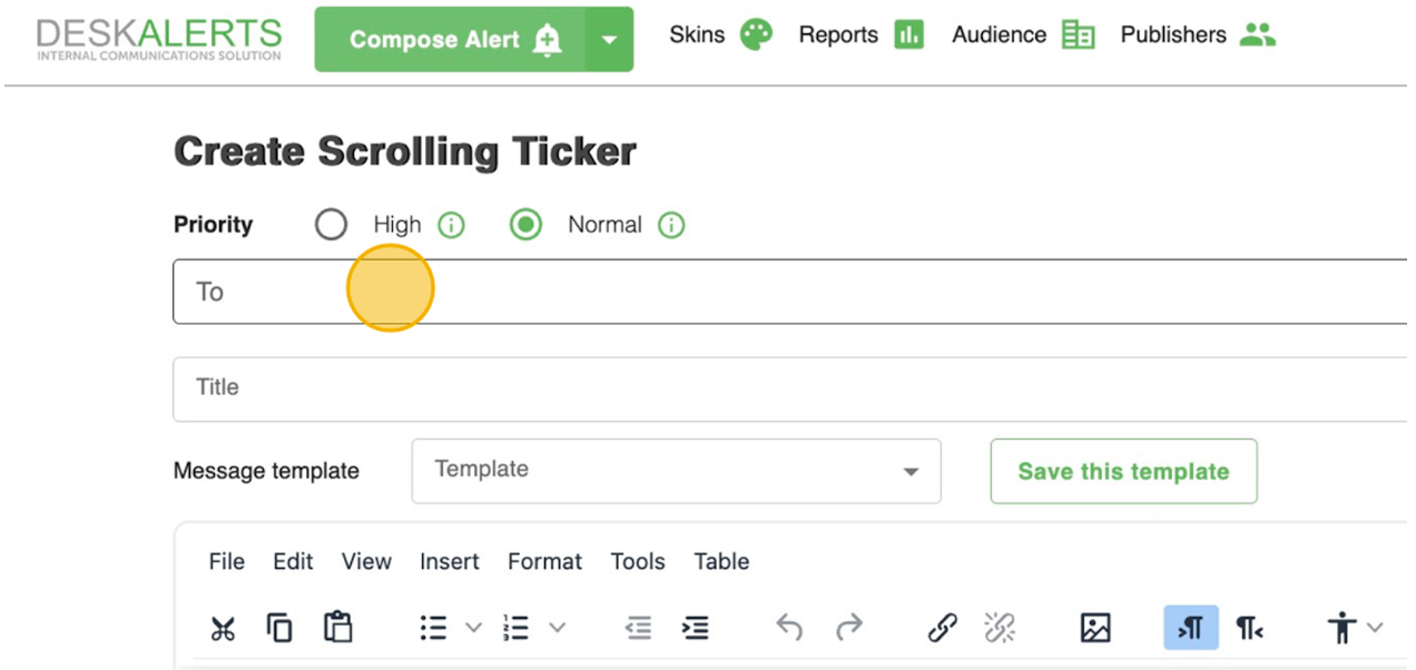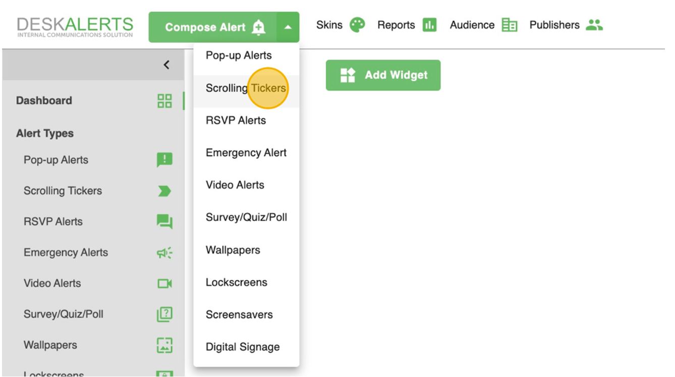 - Navigate to the Scrolling Ticker creation page.