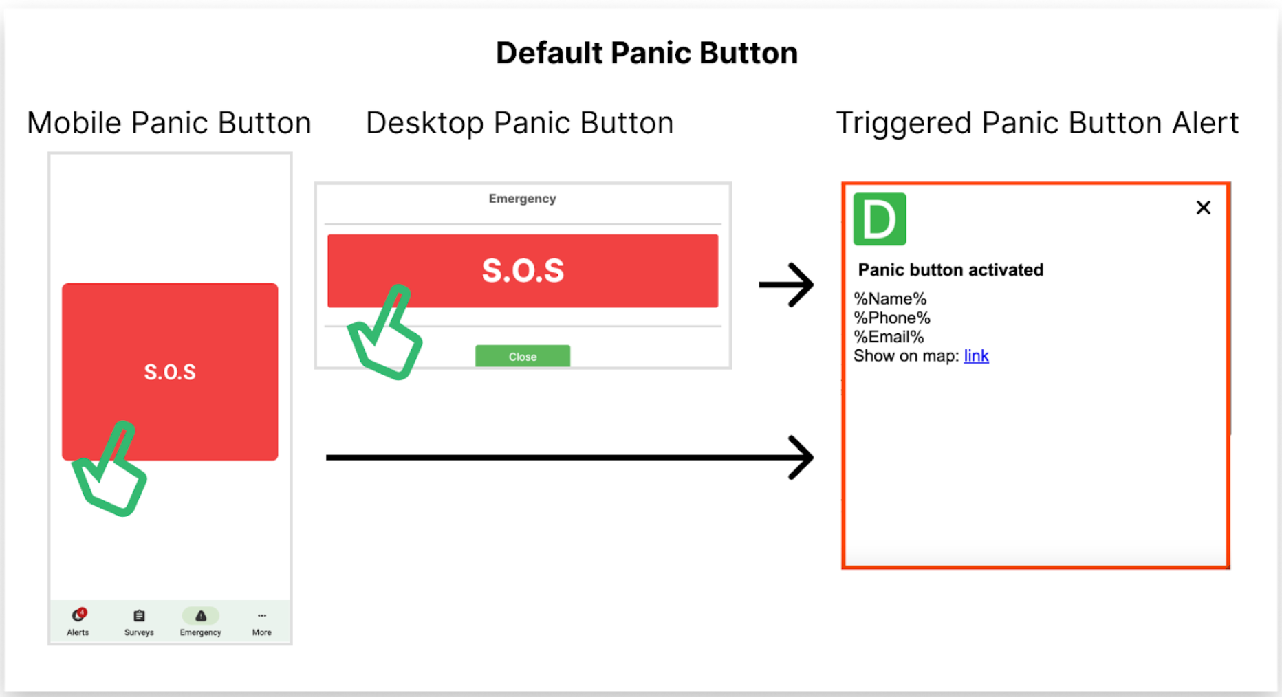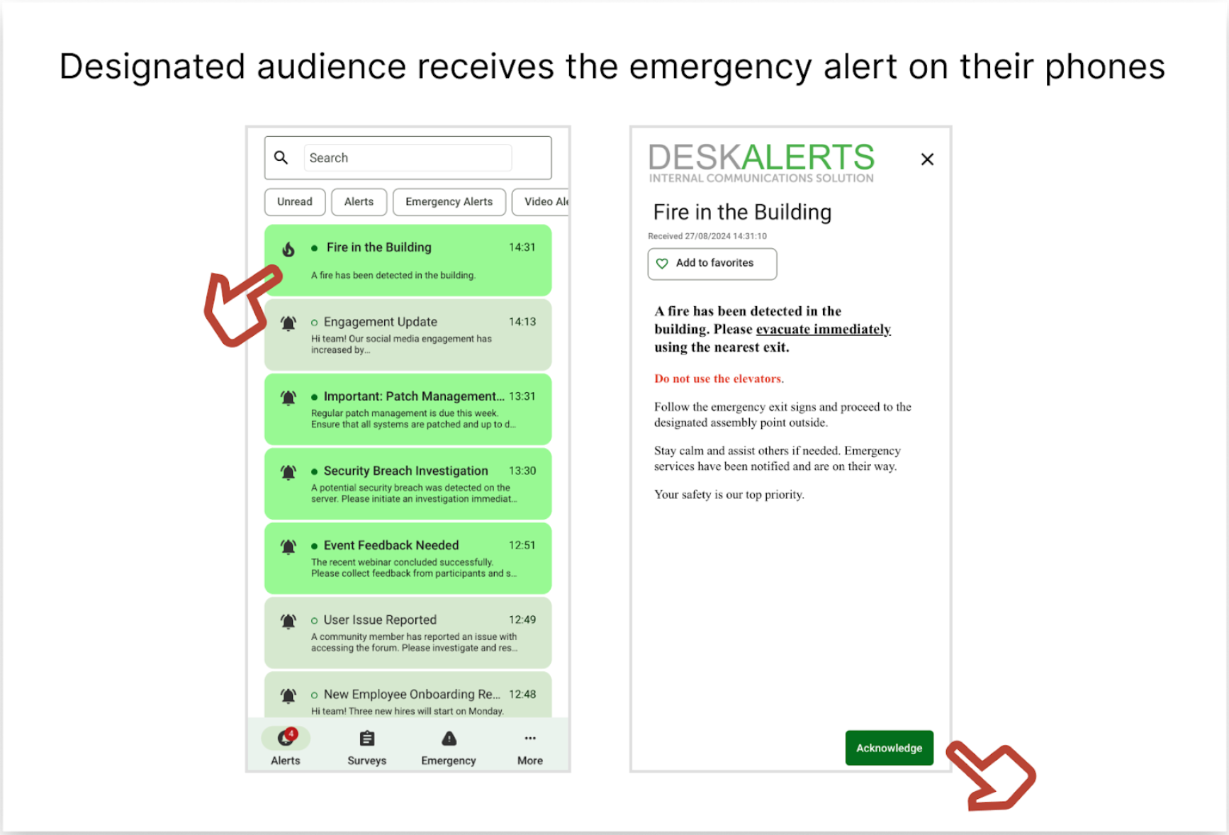 The Emergency Alerts module is one of DeskAlerts' most powerful features. By setting up preconfigured emergency buttons in the DeskAlerts mobile and desktop agents, you can instantly notify your audience about emergencies. When activated, these buttons trigger an alert to all relevant users, ensuring critical information is delivered without delay.