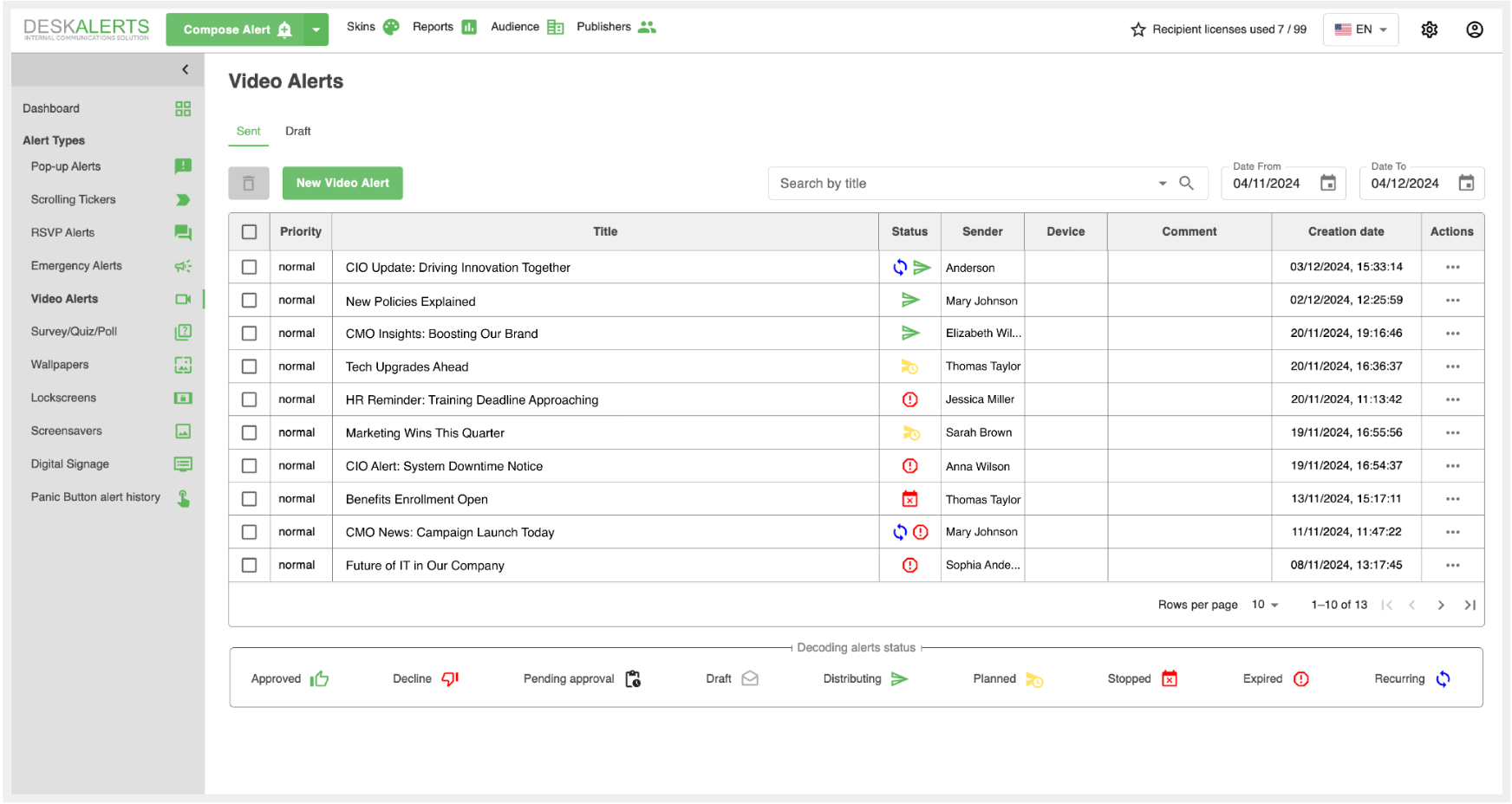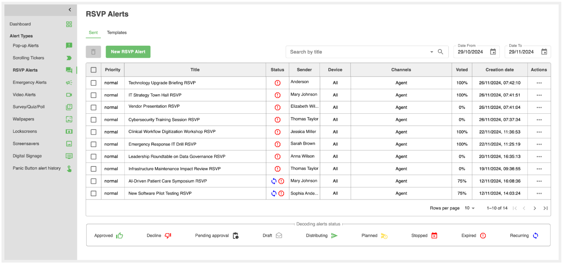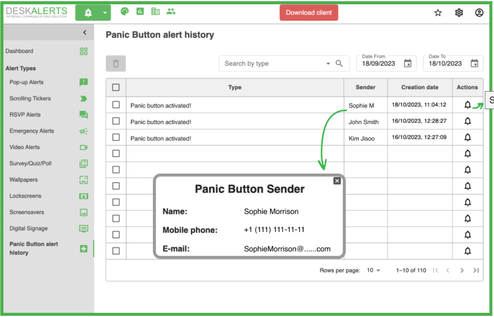 - Sender: The person who created and sent the alert.