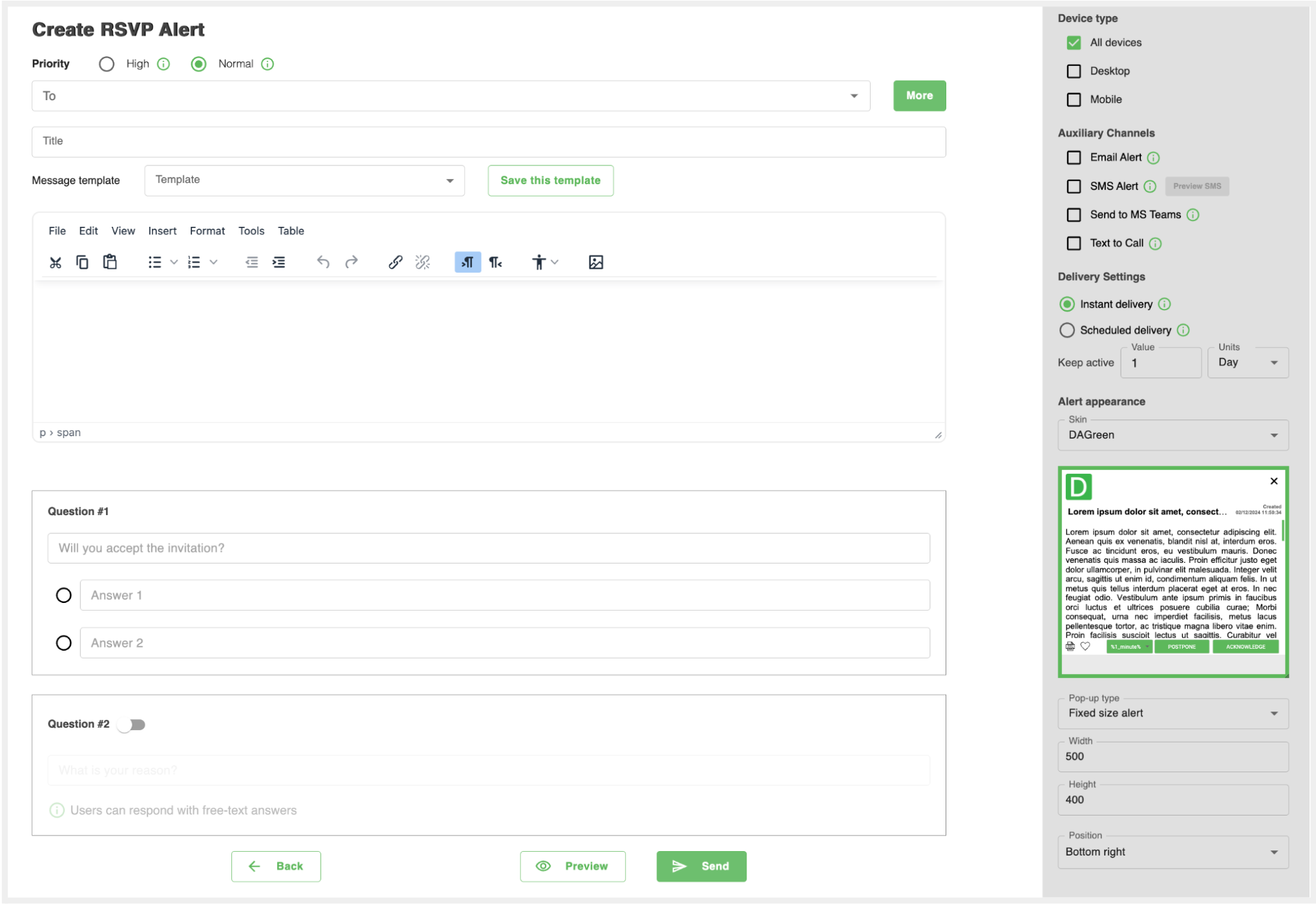 - RSVP Alerts: Set up RSVP-enabled alerts to track responses.