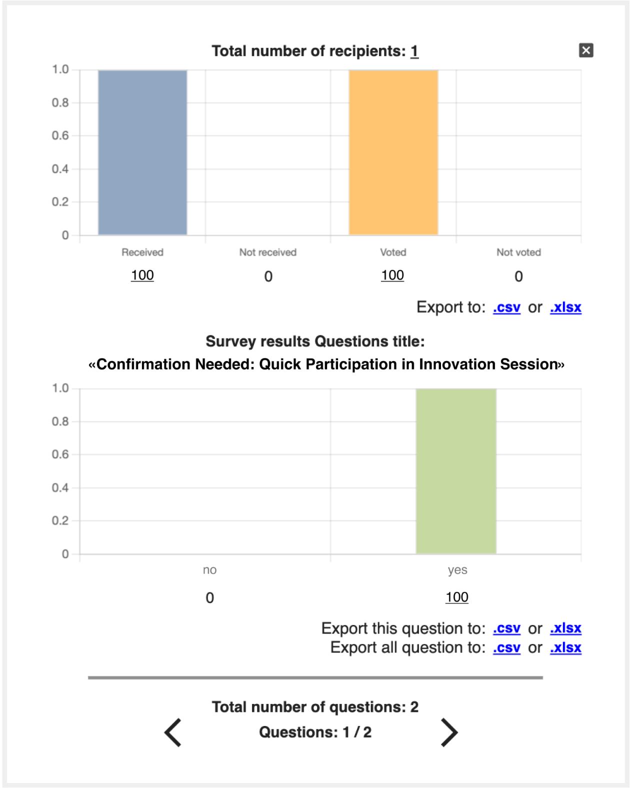 Create and distribute surveys to gather feedback. Analyze responses with built-in tools, including charts that show how many users selected each option. -