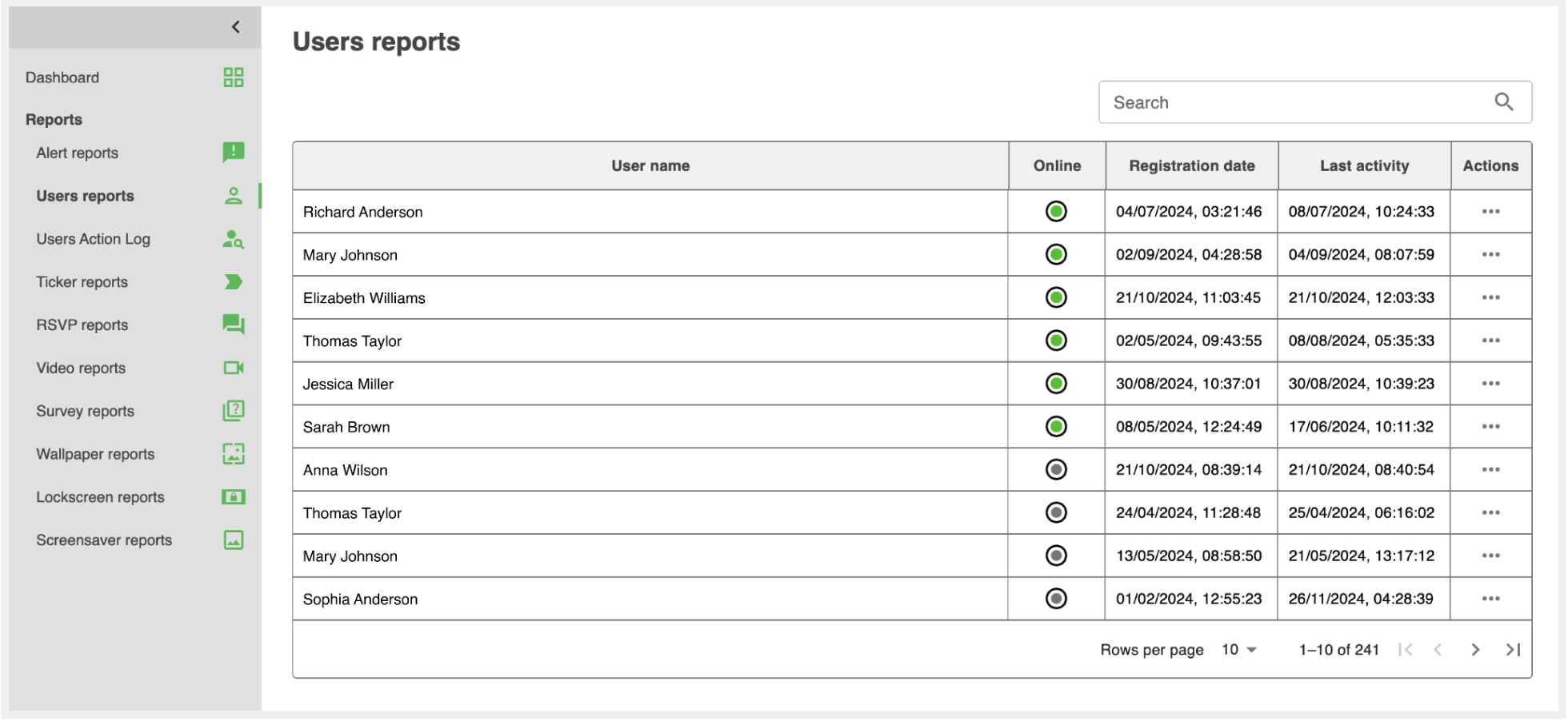 The Users Report provides publishers with a detailed overview of user connectivity and activity within the DeskAlerts system. It allows publishers to determine whether a user is currently online and able to receive alerts, offering real-time visibility into user availability.