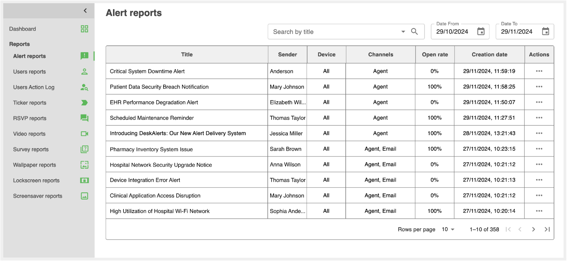 The Reports Module in DeskAlerts provides detailed insights into the performance of your alerts and other distributed content. This feature allows publishers to monitor delivery rates, analyze engagement, and ensure that important messages effectively reach their intended audience.